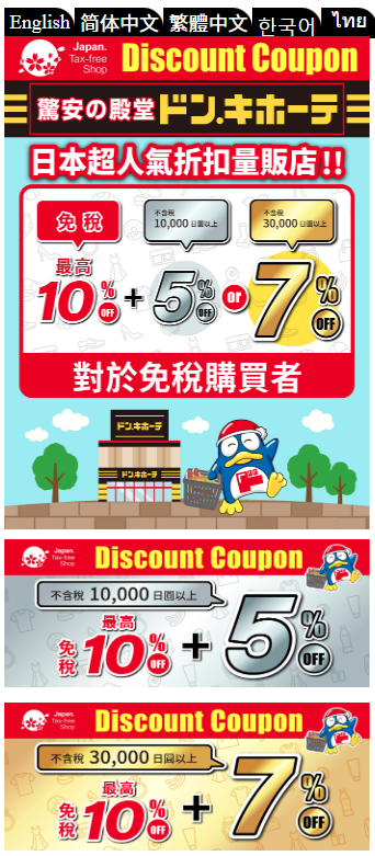 【唐吉訶德 優惠券】彭大家族日本旅遊優惠券下載10%免稅+再享5%優惠,最高還可享7%優惠,日本旅遊購物百貨藥妝最強折扣優惠攻略