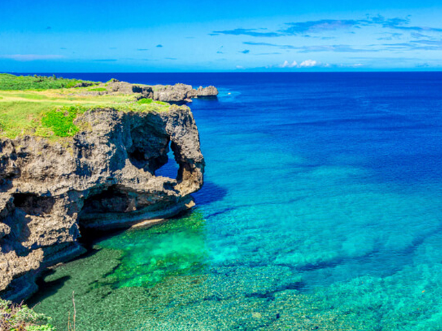 20米高的琉球石灰岩懸崖和上面的草地公園。